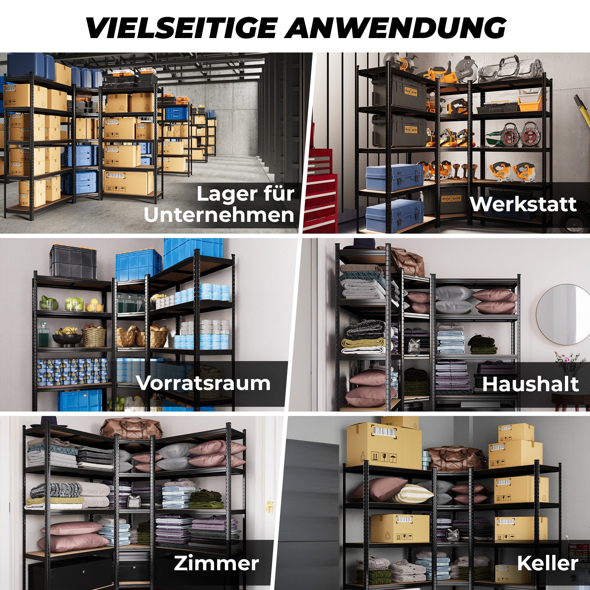 Ob Keller, Garage, Werkstatt, Haushalt, Zimmer oder Vorratsraum – das Regal fügt sich flexibel in jede Umgebung ein und sorgt sofort für spürbar mehr Ordnung. Egal ob schwere Werkzeuge, sperrige Kisten oder alltägliche Vorräte, alles bekommt seinen festen Platz. So bleibt dein Raum übersichtlich, wertvoller Platz wird frei und das Chaos hat endlich ein Ende.
