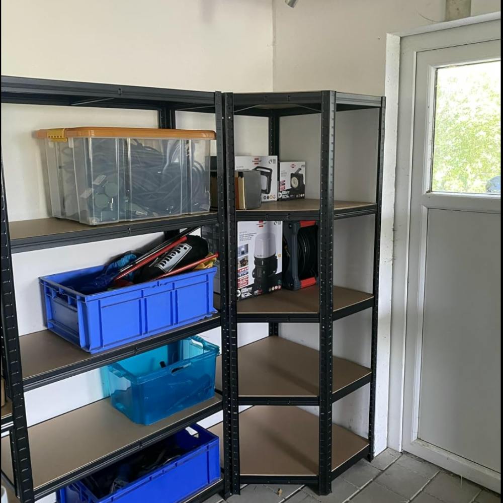 Ob Keller, Garage, Werkstatt, Haushalt, Zimmer oder Vorratsraum – das Regal fügt sich flexibel in jede Umgebung ein und sorgt sofort für spürbar mehr Ordnung. Egal ob schwere Werkzeuge, sperrige Kisten oder alltägliche Vorräte, alles bekommt seinen festen Platz. So bleibt dein Raum übersichtlich, wertvoller Platz wird frei und das Chaos hat endlich ein Ende.